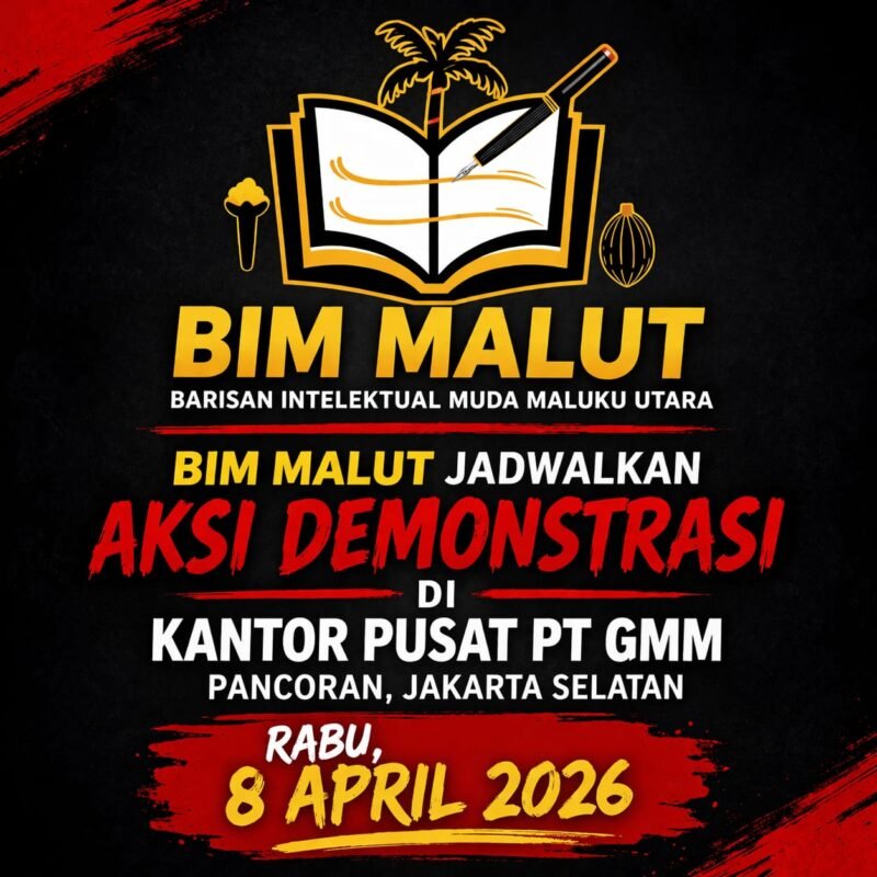 Jakarta – Barisan Intelektual Muda Maluku Utara (BIM Malut) menjadwalkan aksi demonstrasi pada Rabu, 8 April 2026 di kantor pusat PT GMM, Pancoran, Jakarta Selatan. Aksi ini merupakan bentuk protes atas dugaan ketidaktransparanan dalam pengelolaan program beasiswa perusahaan yang ditujukan bagi mahasiswa asal Kecamatan Gane Barat Selatan, Halmahera Selatan.