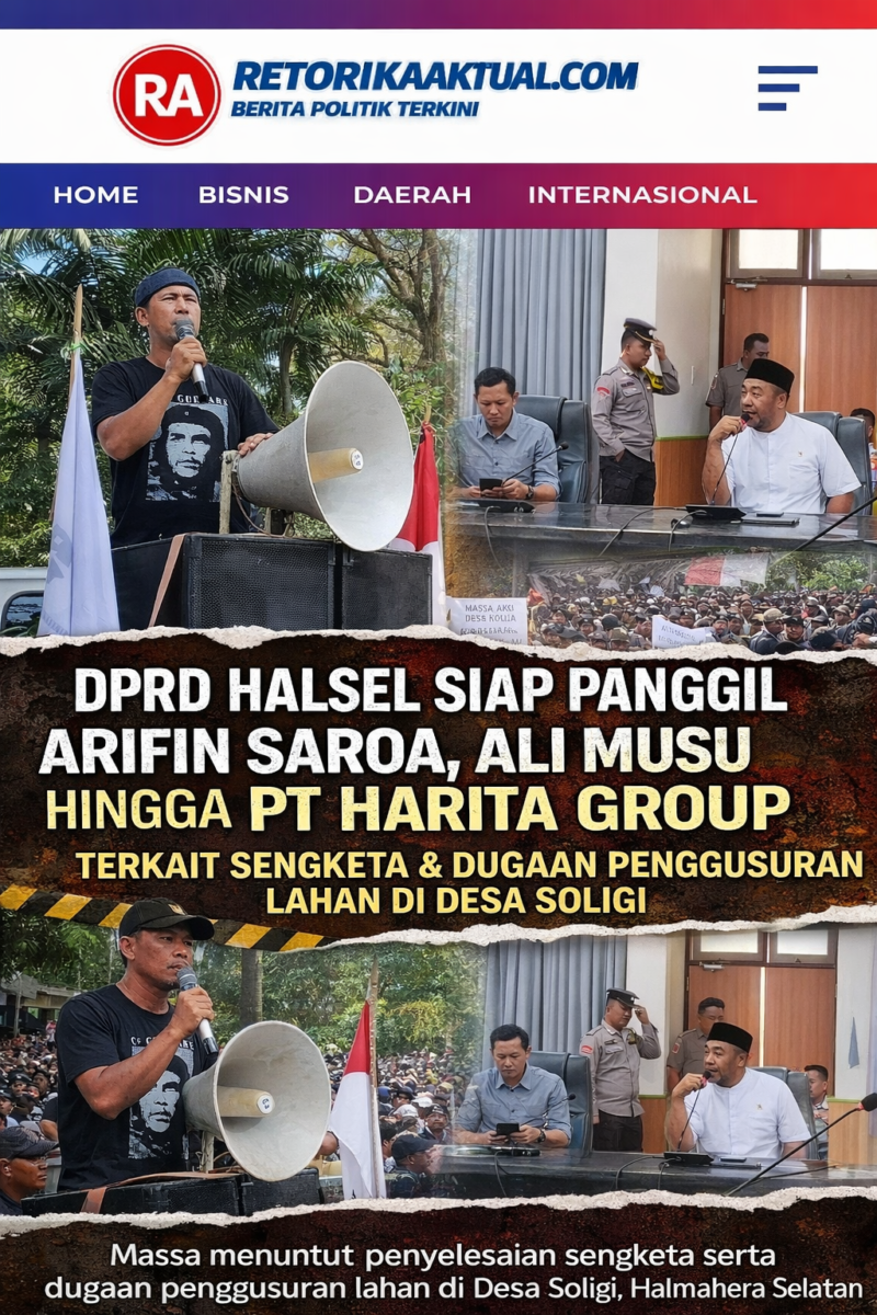 Halmahera Selatan – Sengketa lahan/agraria di Desa Soligi, Kecamatan Obi Selatan, Kabupaten Halmahera Selatan, kian memanas dan menjadi sorotan publik. Dewan Perwakilan Rakyat Daerah (DPRD) Halmahera Selatan menyatakan kesiapan mereka untuk memanggil seluruh pihak yang terlibat, menyusul meningkatnya tekanan masyarakat melalui aksi demonstrasi.