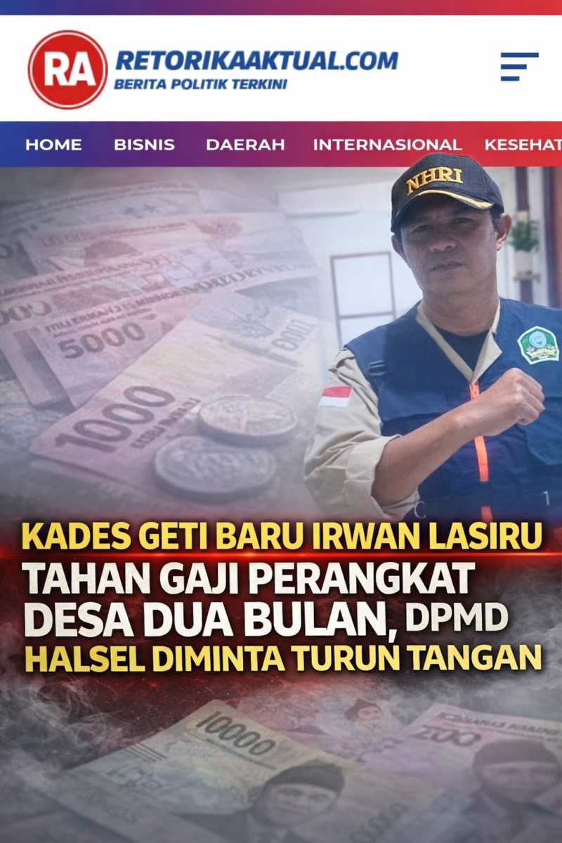HALMAHERA SELATAN – Polemik tata kelola pemerintahan Desa Geti Baru, Kecamatan Bacan Barat Utara, Kabupaten Halmahera Selatan, mencuat ke publik setelah Kepala Desa Irwan Lasiru diduga menahan gaji perangkat desa selama dua bulan.