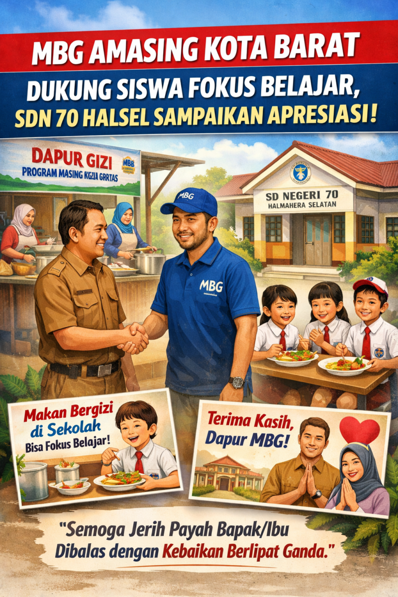 “Kami mengucapkan terima kasih yang setinggi-tingginya kepada pengelola MBG di dapur Amasing Kota Barat,” ujar Kepala SD Negeri 70 dalam keterangannya.
