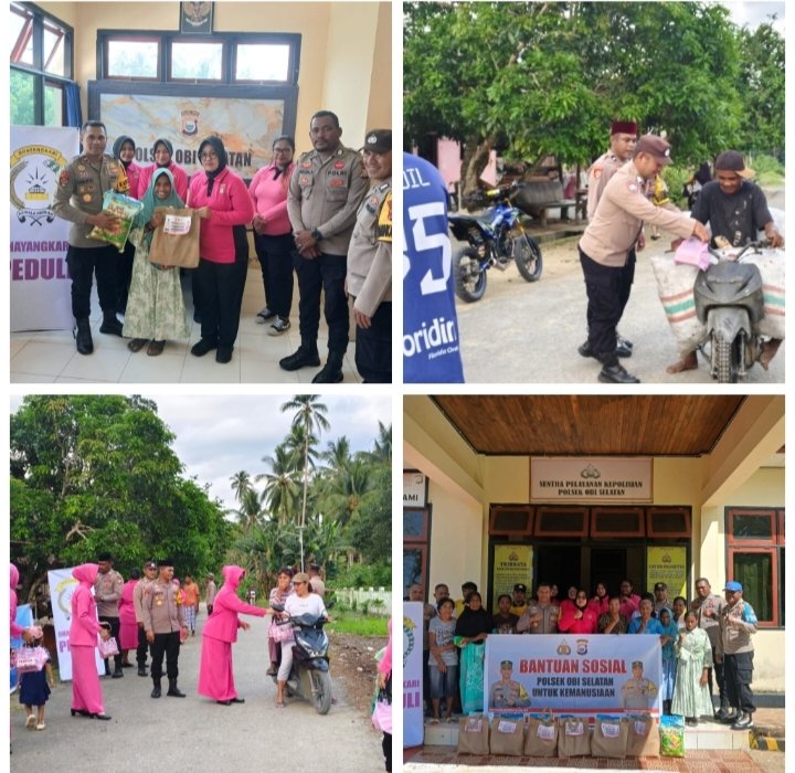 Dalam kegiatan tersebut, Polsek Obi Selatan menyalurkan sebanyak 10 paket sembako kepada warga yang membutuhkan. Bantuan itu diberikan kepada ibu janda lansia serta anak yatim piatu yang berada di wilayah sekitar. Menariknya, penerima bantuan terdiri dari lima warga Muslim dan lima warga Nasrani, sebagai bentuk kepedulian sosial serta kebersamaan tanpa memandang latar belakang agama.