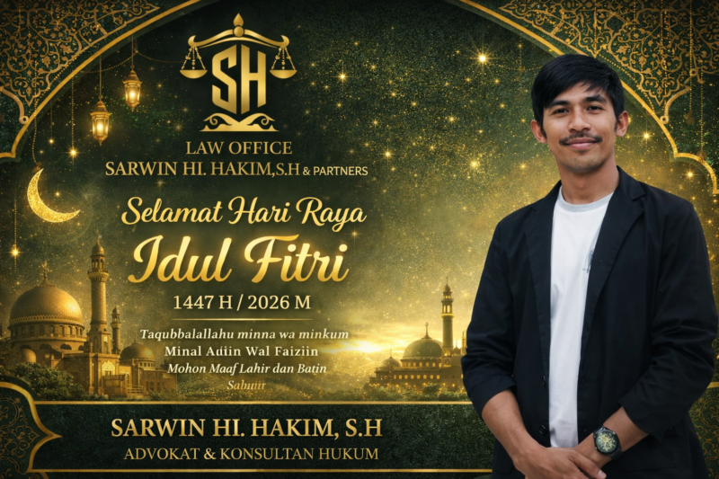 Halmahera Selatan — Dalam rangka menyambut Hari Raya Idul Fitri 1447 Hijriah / 2026 Masehi, Kantor Hukum Law Office Sarwin Hi. Hakim, S.H & Partners menyampaikan ucapan selamat kepada seluruh umat Muslim, khususnya masyarakat di Kabupaten Halmahera Selatan dan sekitarnya.