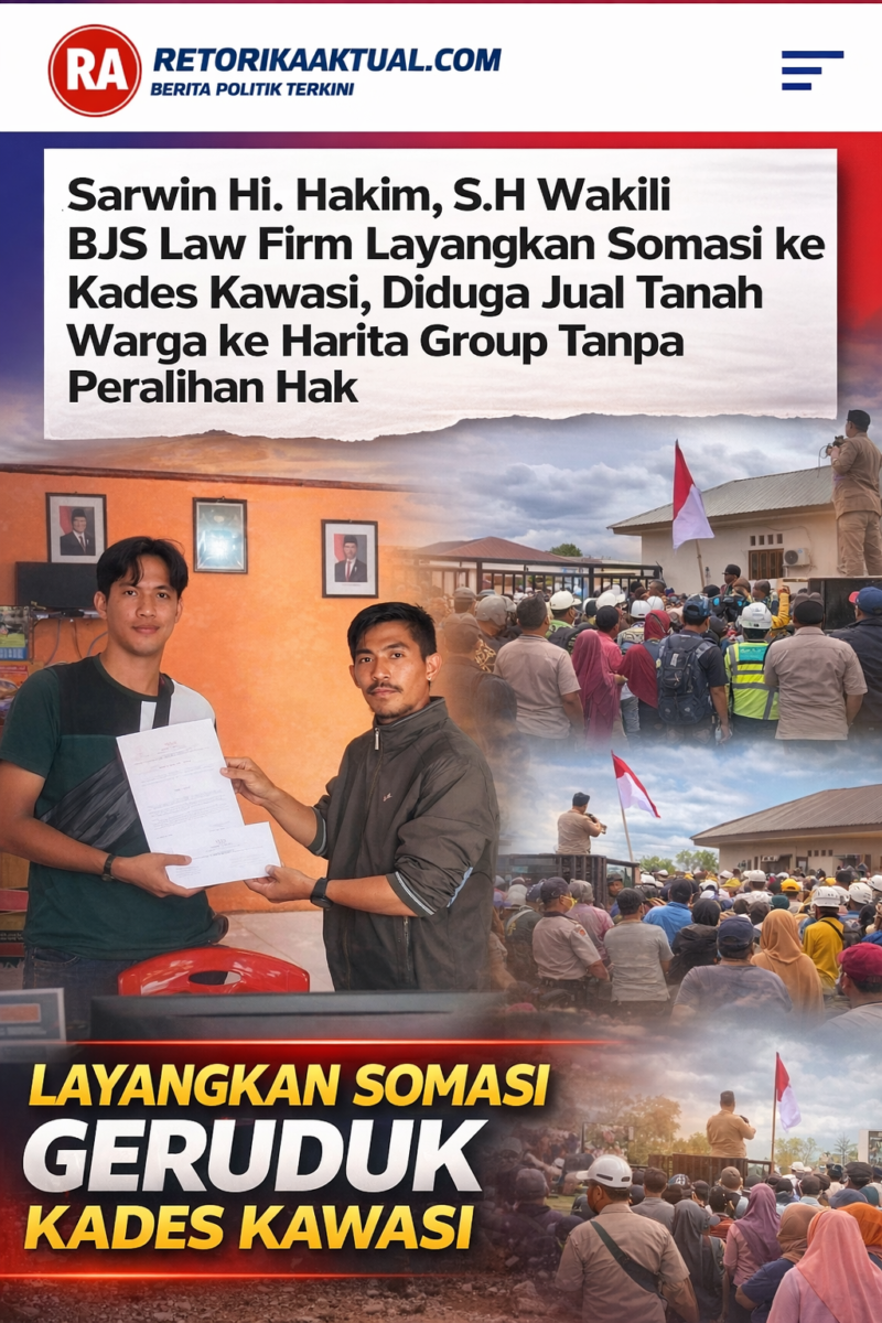 Sarwin Hi. Hakim, S.H Wakili BJS Law Firm Layangkan Somasi ke Kades Kawasi, Diduga Jual Tanah Warga ke PT Harita Group Tanpa Peralihan Hak