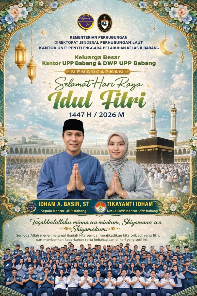 HALMAHERA SELATAN — Dalam rangka menyambut Hari Raya Idul Fitri 1447 Hijriah/2026 Masehi, Keluarga Besar Kantor Unit Penyelenggara Pelabuhan (UPP) Kelas II Babang bersama Dharma Wanita Persatuan (DWP) UPP Kelas II Babang secara resmi menyampaikan ucapan selamat Hari Raya Idul Fitri kepada seluruh umat Muslim, khususnya masyarakat di Kabupaten Halmahera Selatan.